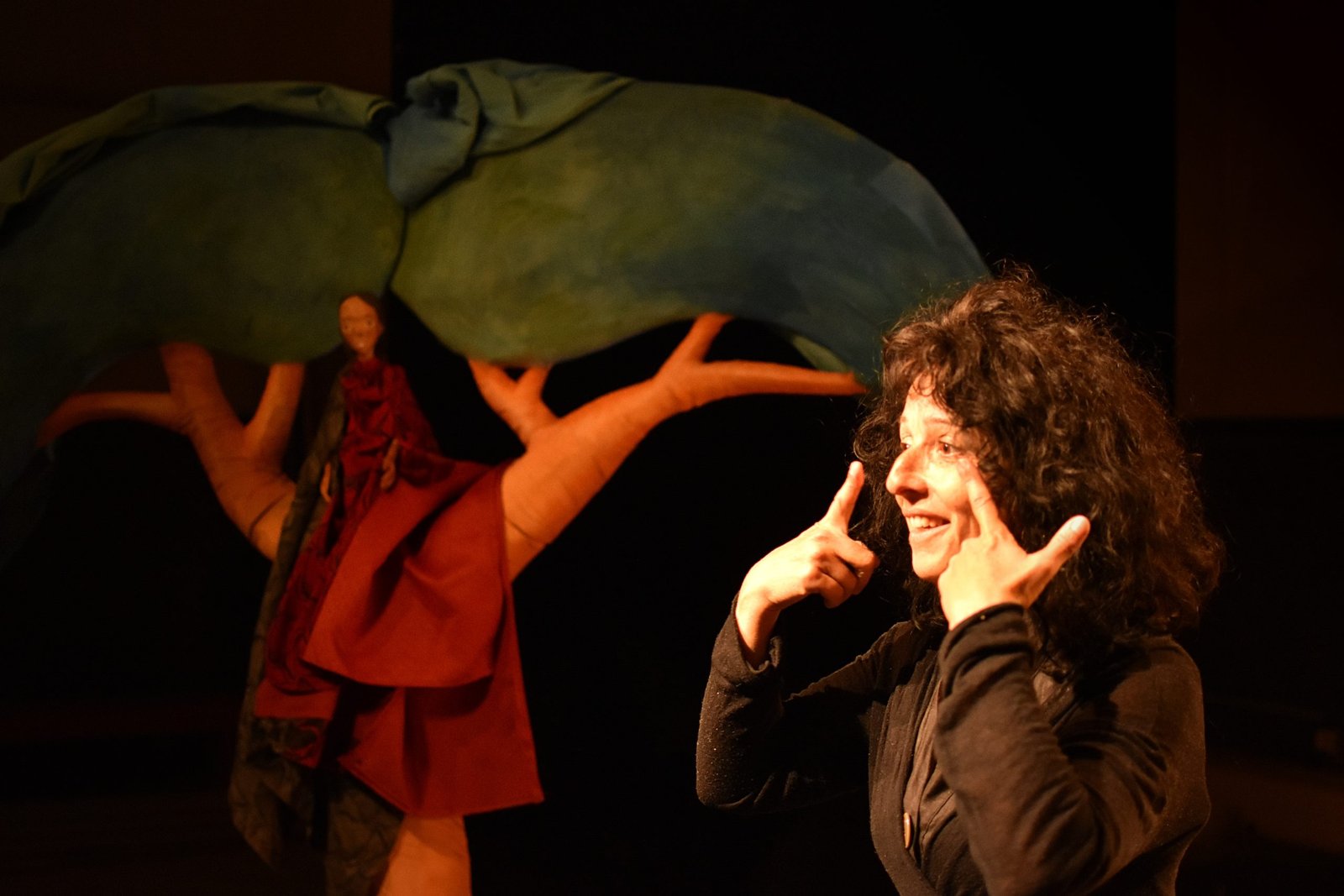 Le travail de scénographie laisse libre part à  l’imagination de l’enfant : l’arbre se transforme, il devient vent, monde ou visage.
