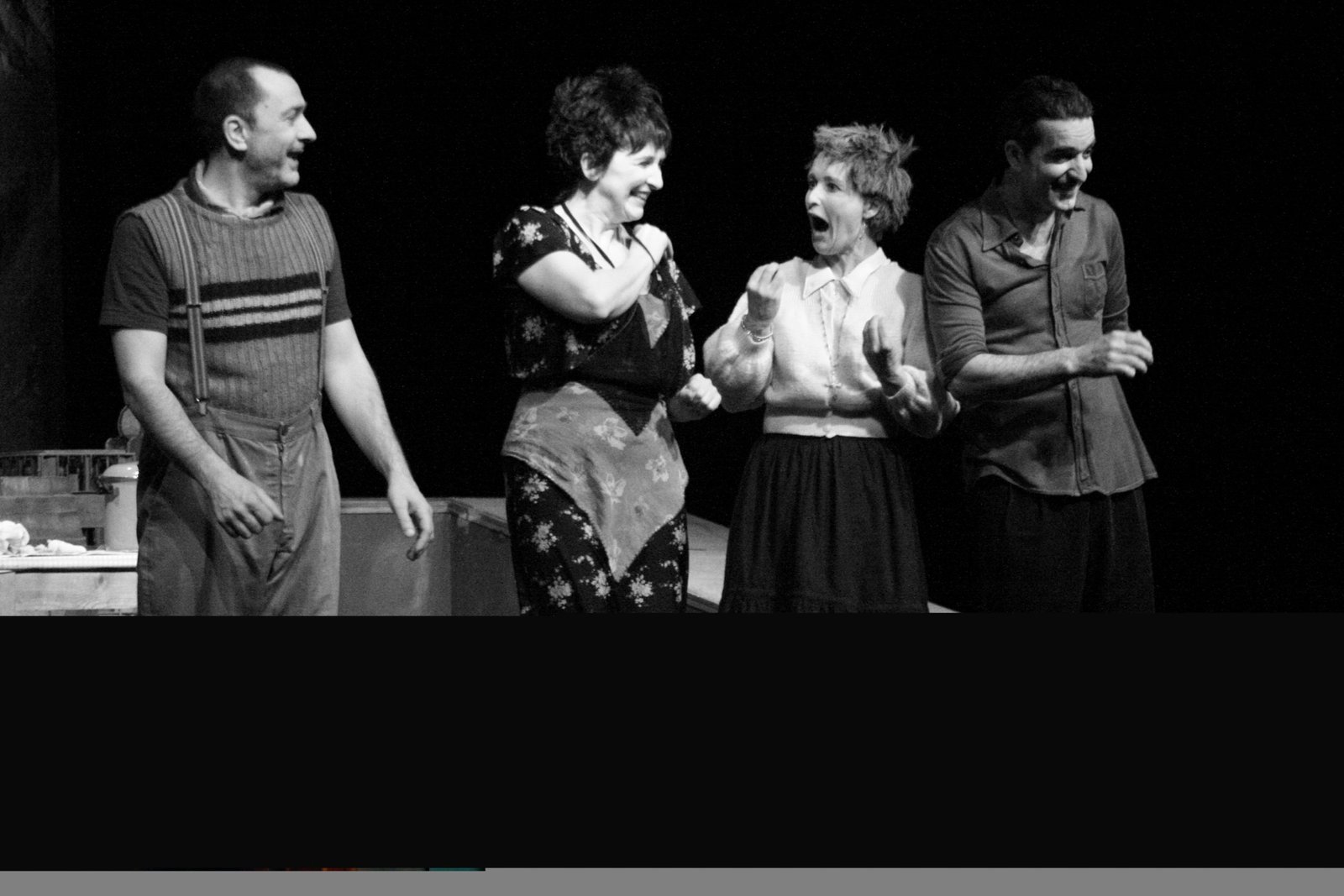 Un 4ème personnage, un livreur débonnaire et joueur, s’attarde volontiers et intervient avec pertinence dans ce petit monde.