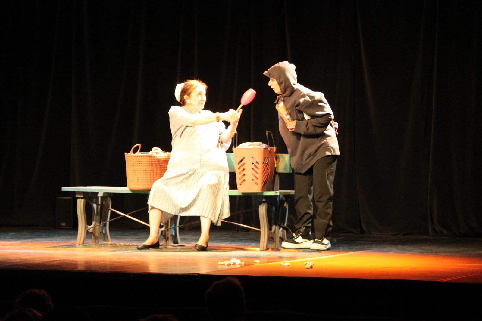 Les personnages de contes ont une fâcheuse tendance à faire intrusion dans le réel, par la magie du théâtre, faite de petits riens… les limites entre la « vraie vie » et le monde de l’imaginaire se fondent et se confondent.